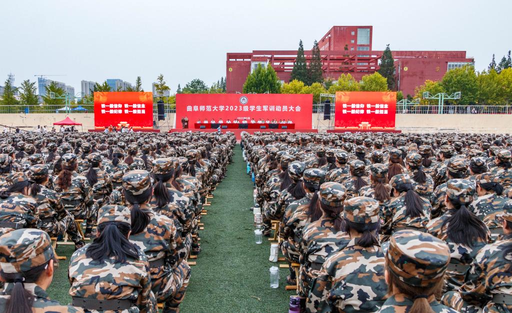 曲阜师大学生工作处讯 9月11日,开云链接官网2023级学生军训动员大会分别在曲阜、日照两校区举行。学校党委副书记卢国强,党委常委、副校长胡凡刚,党委常委、副校长刘刚、党委常委、副校长纪洪涛出席大会。学校相关党政部门负责人、各学院负责领导、2023级辅导员、2023级全体参训同学参加大会。大会由学生工作处(武装部)处(部)长、军训旅副旅长姜美颖,团委书记、军训旅副政委孔轶众主持。
