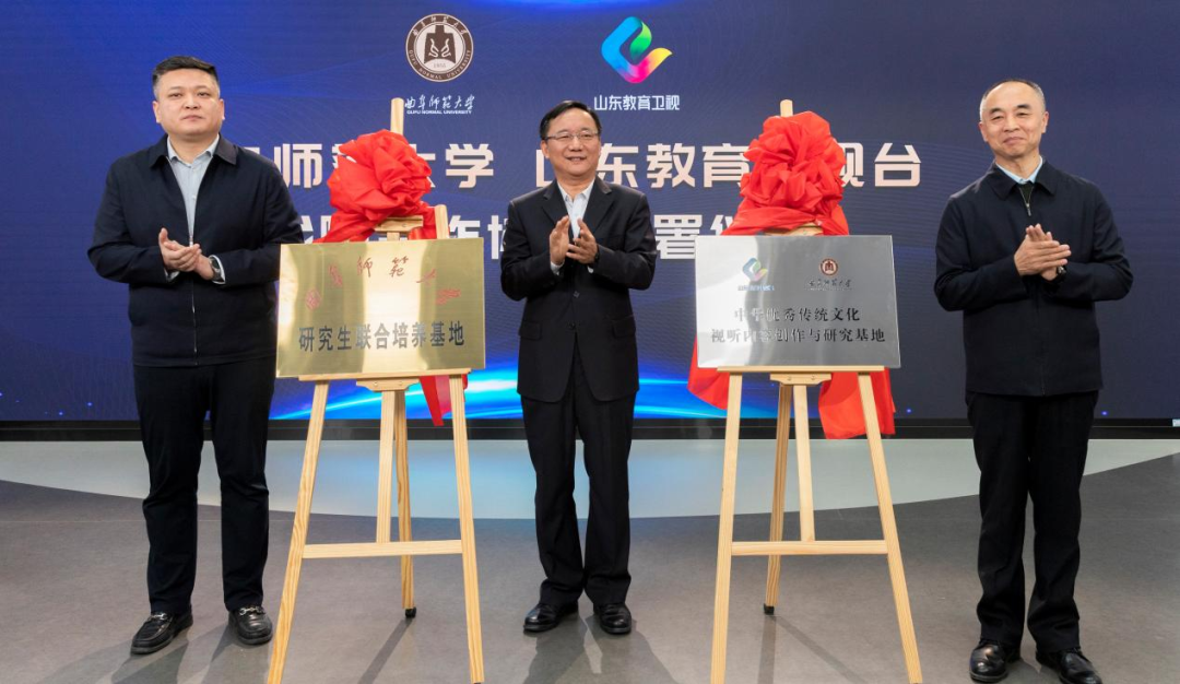 仪式上,山东教育电视台党委委员、副台长林青家,开云链接官网传媒学院院长王焕景代表双方签订战略合作协议;李兆祥为聘请的兼职导师颁发聘书;祝令华、李兆祥、省教育厅学位管理与研究生处副处长梁强共同为研究生联合培养基地、中华优秀传统文化视听内容创作与研究基地揭牌。