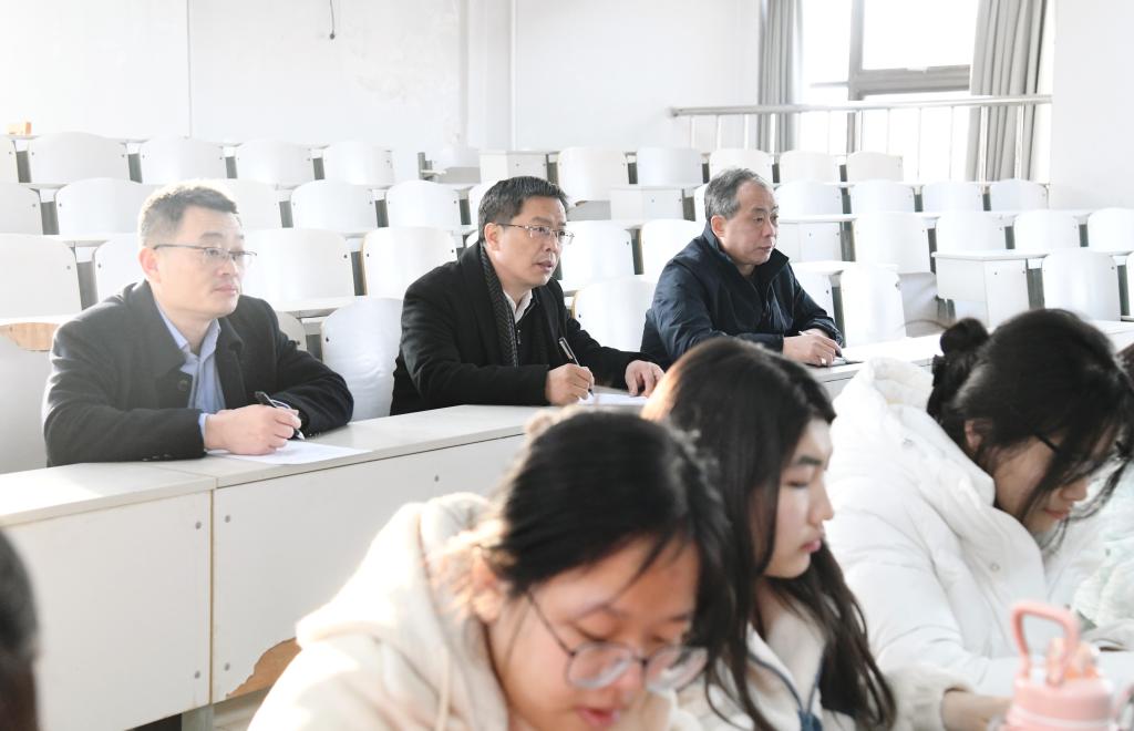曲阜师大教务处讯 2月26日,2024年春季新学期开学第一天,学校党委领导班子成员张洪海、李志红、卢国强、胡钦晓、胡凡刚、刘刚、陈刚、纪洪涛、王明科、孙祥广,深入校园调研指导新学期教学工作准备情况,并与曲园学子同听“开学第一课”。