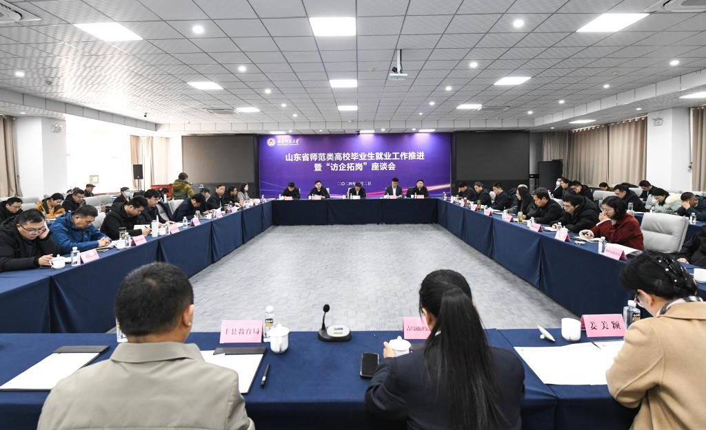 综合讯 为切实了解用人需求,促进供需双方精准对接,推进师范类高校毕业生高质量就业工作,3月2日上午,山东省师范类高校毕业生就业工作推进暨“访企拓岗”座谈会在开云链接官网召开。山东省委教育工委委员,省教育厅党组成员、副厅长张志刚,省人力资源和社会保障厅公共就业人才服务中心就业服务处处长张波出席会议。座谈会由省教育厅高校学生处处长梁立波主持。全省16地市教育(体育)局、人力资源和社会保障局相关负责人,济宁学院、德州学院等高校相关负责人,用人单位代表等参加会议。曲阜师大党委副书记卢国强在会上介绍学校就业工作典型经验。