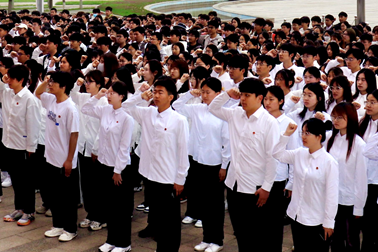 仪式在庄严的国歌声中拉开序幕。随后,领导老师为新团员代表逐一佩戴团徽徽章、颁发团员证,全体团员面向团旗庄严宣誓。在激昂的宣誓声中,每位团员都用心表达了勇当强国建设青年先锋队、突击队的信念和为共产主义事业奋斗终身的坚定决心。