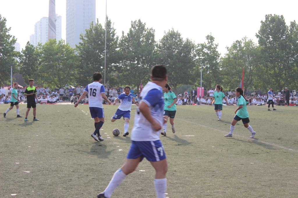 闭幕式上,校学生女子足球队与教职工足球队携手登场,展开了一场精彩的足球对决表演赛,点燃了全场热情。
