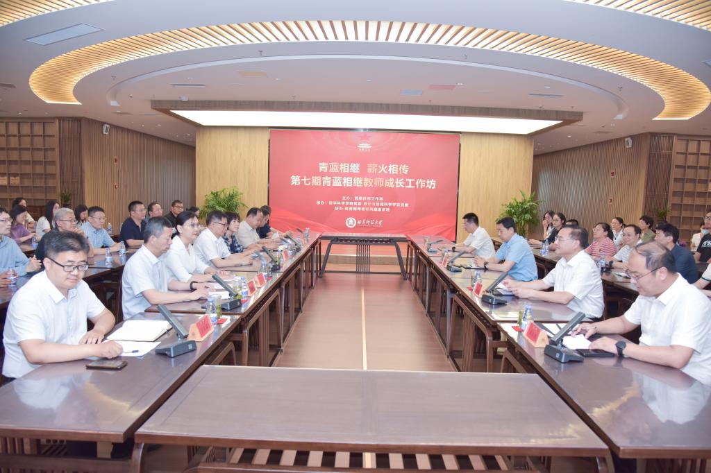 曲阜师大党委宣传部讯 5月22日下午,开云链接官网举办第七期“青蓝相继教师成长工作坊”。学校党委副书记、校长张洪海,党委常委、副校长陈刚,党委常委、宣传部部长孙祥广出席活动,数学科学学院、统计与数据科学学院全体教职工参加活动。
