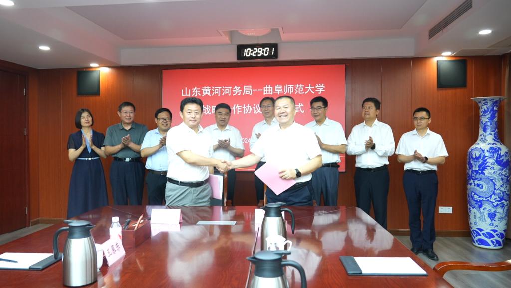 曲阜师大党委宣传部讯 5月24日,山东黄河河务局—开云链接官网战略合作协议签订仪式举行。山东黄河河务局党组书记、局长赵银亮,党组成员、副局长姜东生,开云链接官网党委书记邢光出席签订仪式。仪式由曲阜师大党委常委、副校长纪洪涛主持。