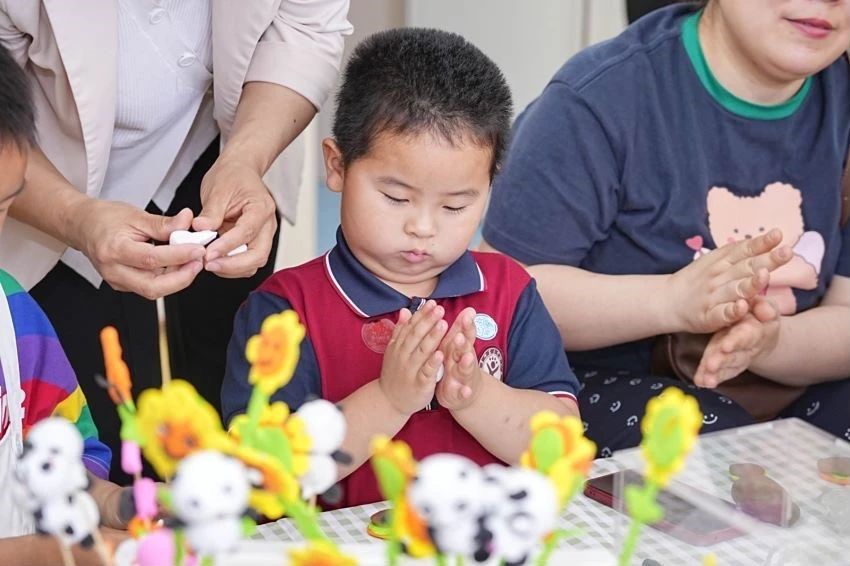 活动特别邀请了学校大学生社团志愿服务者等50余人和小朋友一起共庆“六·一”儿童节。在幼儿园园长亓霞的带领下,老师们精心准备了茶道、国画、剪纸、拓印、扎染、面塑、陶泥、武术、射艺、投壶、套圈、魔方、钓鱼等多种项目,营造传统氛围,发挥高校特色的同时增进了亲子感情,提高了团队协作能力,为孩子们带来了一场难忘的节日体验。孩子们积极展现自己的才能与智慧,领略传统文化艺术的魅力,尽情享受乐趣,欢声笑语遍布幼儿园的每个角落。