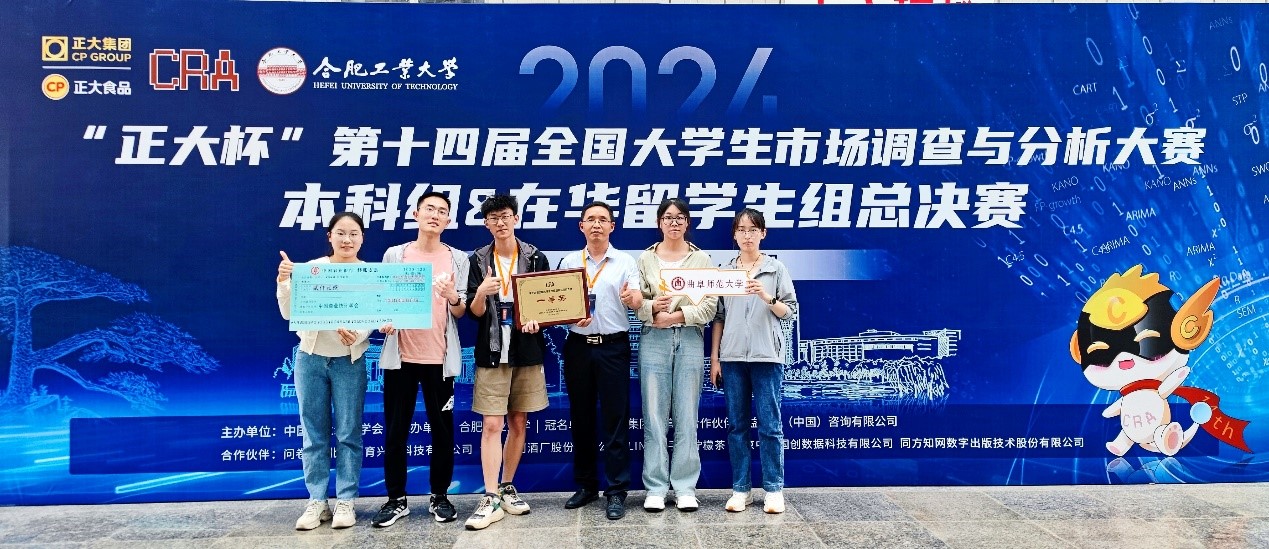 统计与数据科学学院讯 6月1日至2日,第十四届全国大学生市场调查与分析大赛本科组&在华留学生组总决赛在合肥工业大学举办。统计与数据科学学院2021级本科生陈添硕、马亚楠、李文静、张鑫荣和袁艺琳在陈志成老师的指导下,以全国第五名的成绩荣获一等奖并晋级海峡两岸大学生市调大赛。这不仅是曲阜师大在该项赛事中取得的最好成绩,也是山东省高校首次晋级海峡两岸大学生市调大赛,实现了山东赛区的历史性突破。