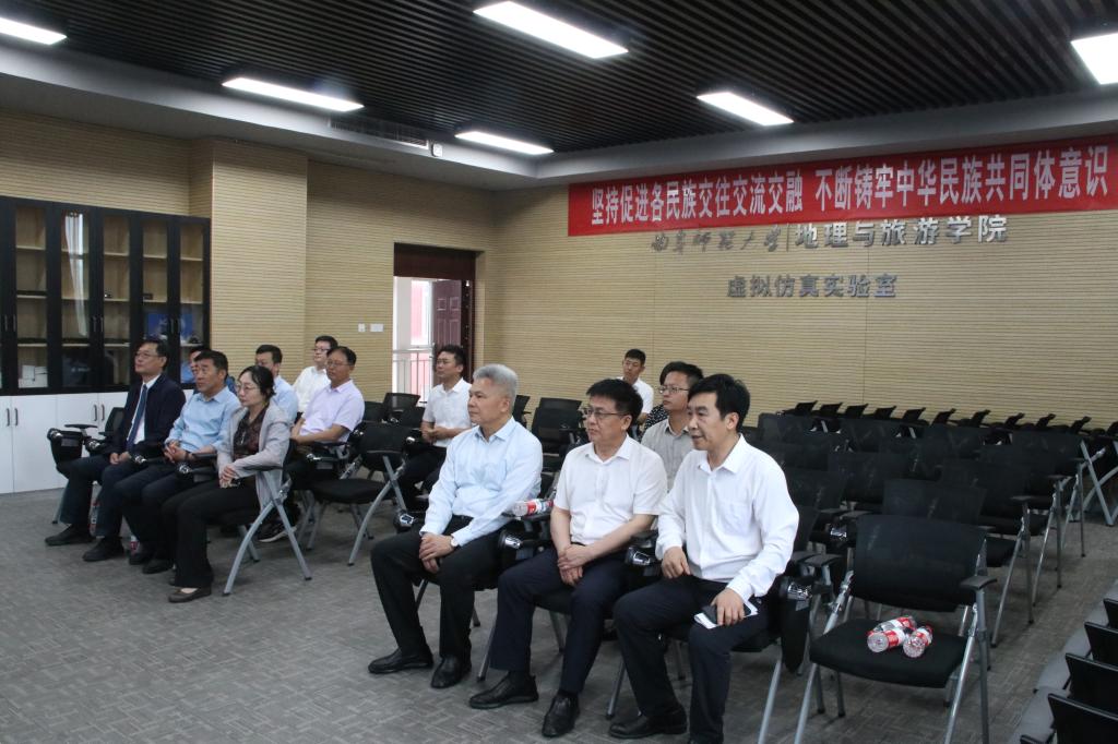 胡凡刚介绍了学校办学情况和学校近期民族宗教事务工作开展情况。马辉一行参观了地理与旅游学院虚拟仿真实验室、数字地质与地貌功能实验室、气象观测实验室等,听取了学院关于民族学生管理情况的汇报。