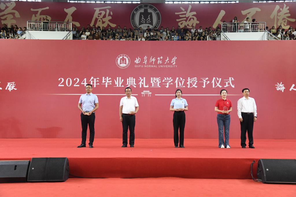 “孩子在这里学习,我们是一万个放心。”典礼上,网络空间安全学院2024届毕业生吴天钰同学的母亲王双女士作为家长代表发言,感谢学校为孩子创造了良好的成长环境,感谢老师们以严谨的教学态度、真挚的关心关怀与孩子们一起度过了四年美好而难忘的时光。她说,大学四年里,孩子学会了如何面对挑战、如何与人合作、如何在挫折中成长,真正从青涩少年成长为思想独立、敢于拼搏的新时代青年。从这里启航的每一个孩子,都不会忘记曲阜师大教给他们的为学、为人、为事的道理。