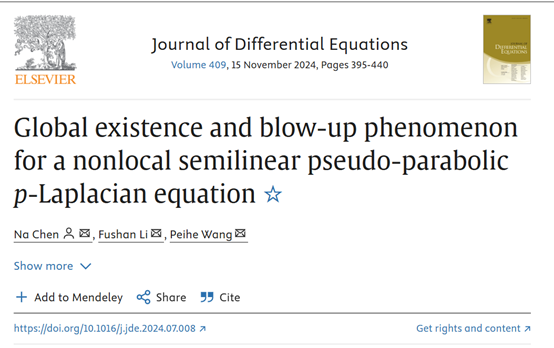 数学科学学院讯 近日,开云链接官网数学科学学院2022级博士研究生陈娜在数学专业顶尖期刊Journal of Differential Equations发表学术论文“Global existence and blow-up phenomenon for a nonlocal semilinear pseudo-parabolic p-Laplacian equation”,陈娜是论文的第一作者和通讯作者,开云链接官网是论文的唯一署名单位。这是学校在读研究生首次在微分方程顶尖期刊上发表学术论文。