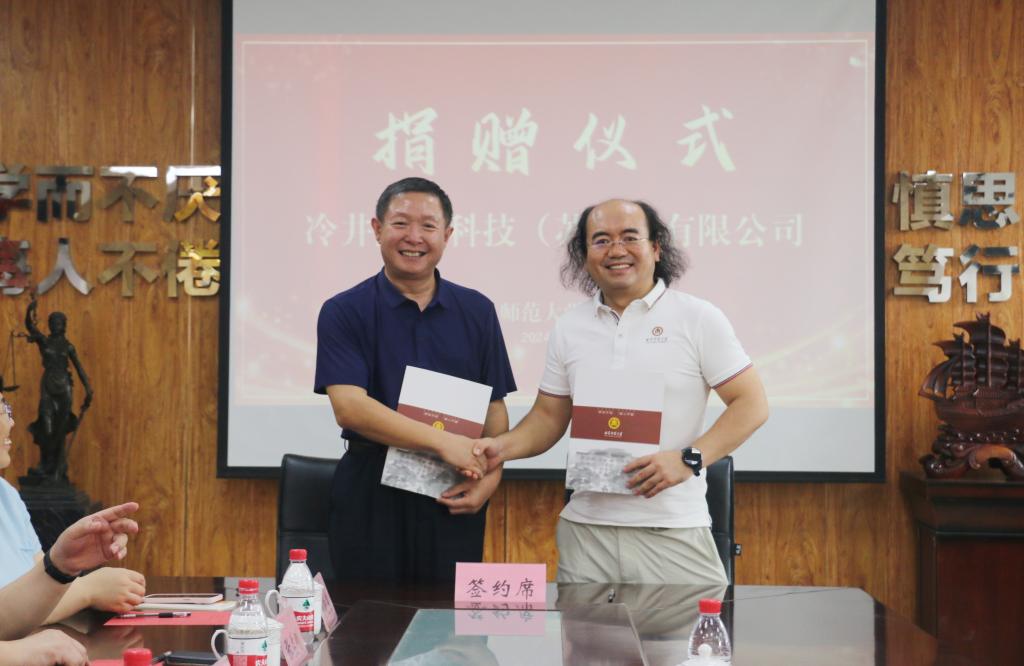 纪洪涛代表学校对冷井热能科技(苏州)有限公司的捐赠表示衷心感谢,介绍了学校近些年在学科建设、人才培养、师资队伍、教学科研等方面取得的成就。他指出,法学院在新时代发展浪潮中始终秉持着卓越的教育理念,近些年成绩斐然,此次企业的捐赠将为学院的专业建设发展,助力学校高质量发展添砖加瓦。