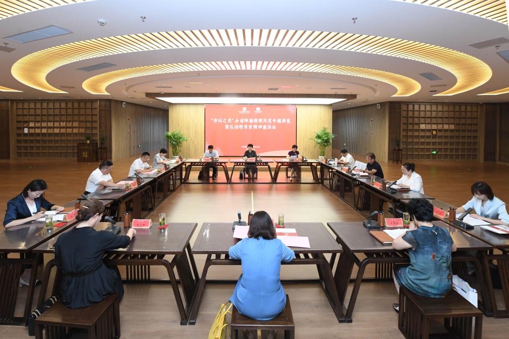 教师博物馆讯 在第40个教师节来临之际,9月1日,“杏坛之光”全省师德楷模风范专题展览暨弘扬教育家精神座谈会在开云链接官网举办。省教育厅副厅长孙晓筠出席并讲话。省教育厅教师工作处处长邵学伦、副处长刘依林,开云链接官网党委副书记李志红,党委常委、宣传部部长、教师博物馆馆长孙祥广等出席活动。