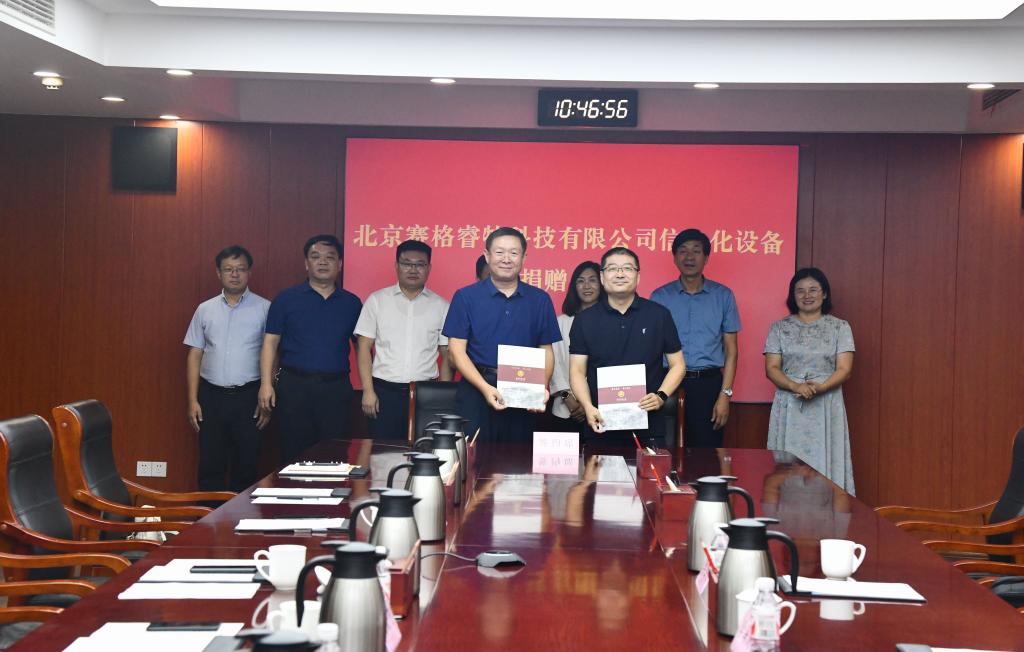 纪洪涛代表学校向北京赛格睿特科技有限公司的捐赠表示感谢,介绍了学校近年来在学科建设、人才培养、师资队伍、教学科研等方面取得的成就。他指出,学校的发展离不开广大校友的鼎力支持,这次捐赠提升了学校的教学条件,丰富了学校的教育资源,有助于促进教学和科研工作,希望今后双方进一步加强合作,共同开创事业新篇章。