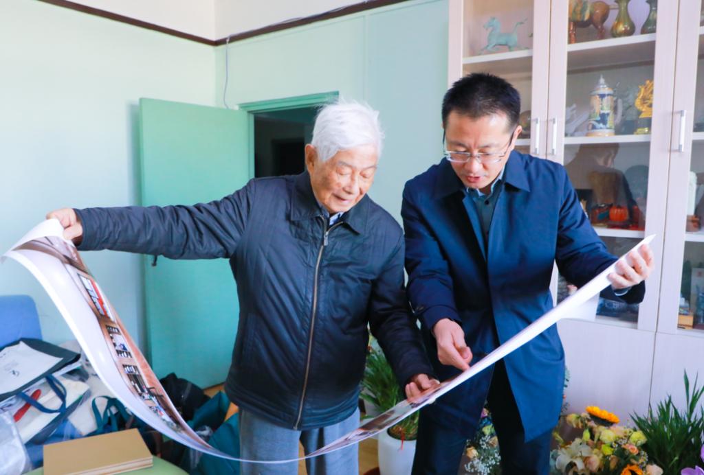 孙祥广转达了邢光书记、张洪海校长的问候和敬意,向先生汇报了近期教师博物馆获批国家级博物馆、承担上级任务、举办专题展览等各方面工作,特别汇报了筹建研学馆相关思路,展示了“明远书房”全景照片和珍藏书目,请先生指点和赐教。