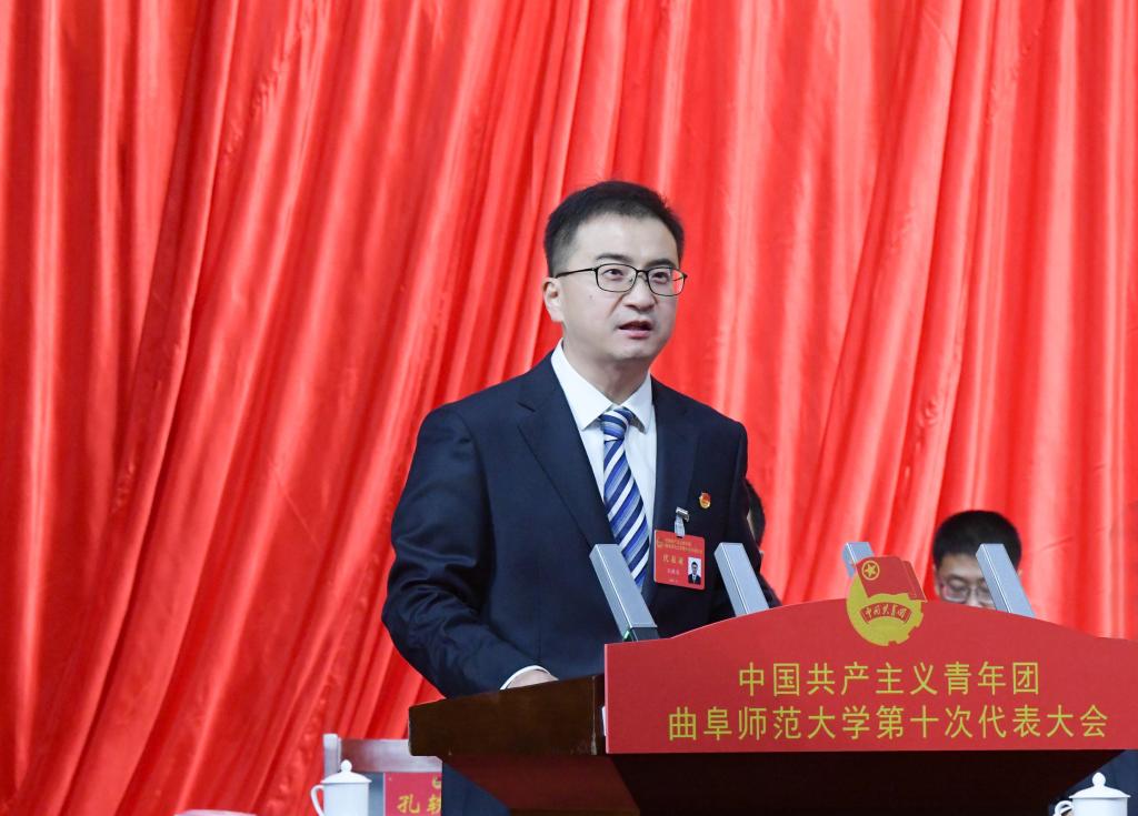 学校团委书记孔轶众代表共青团开云链接官网第九届委员会向大会作题为《高举旗帜跟党走,牢记使命建新功——团结带领广大团员青年为建设世界知名的高水平孔子家乡大学贡献青春力量》的工作报告,回顾了学校第九次团代会以来共青团的工作,分析了新时代共青团工作面临的新形势新任务,明确提出了今后五年学校共青团工作的总体思路和主要任务。