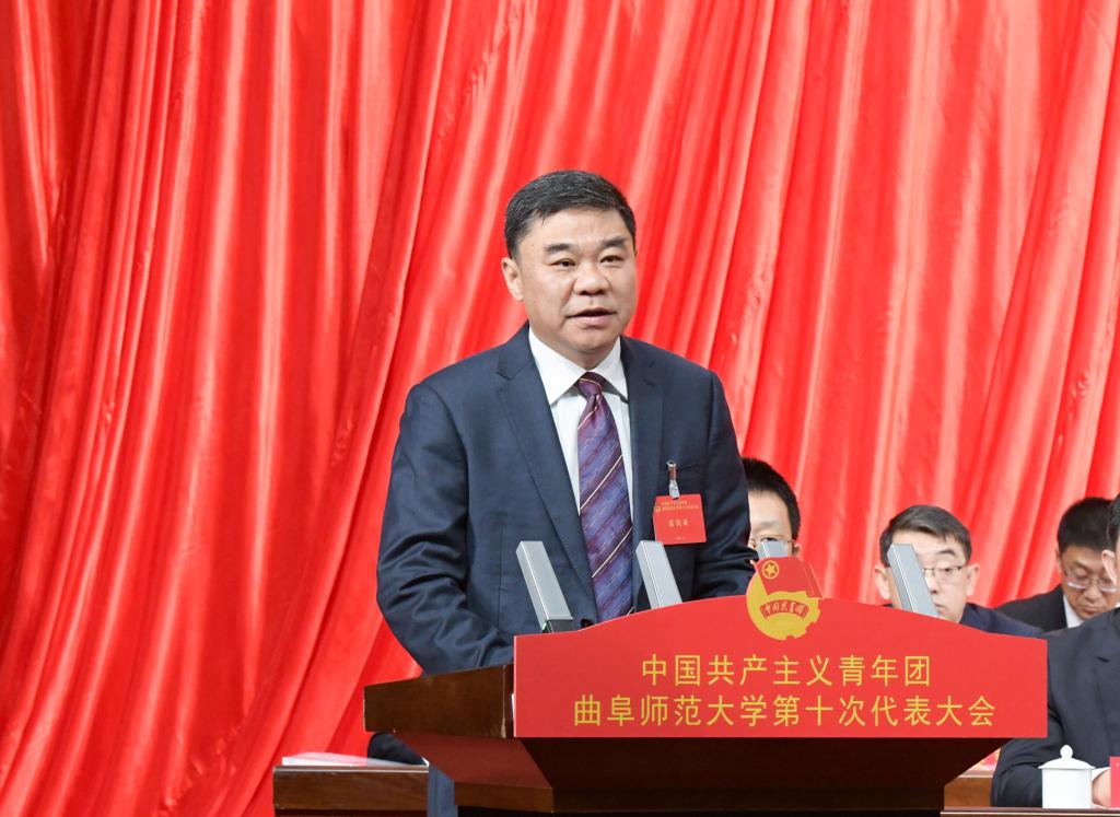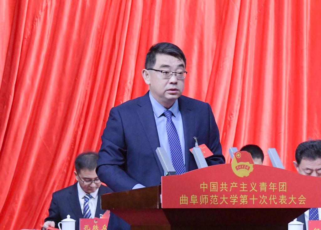 学校党委书记邢光代表学校党委向大会的召开表示祝贺,并充分肯定了第九次团代会以来学校共青团的工作。邢光指出,校团委认真履行党赋予的职责使命,发扬“党有号召,团有行动”的光荣传统,努力适应时代发展新趋势,积极应对青年需求新变化,围绕中心、服务大局,在思想引领、校园文化、社会实践、志愿服务、创新创业等方面做了大量卓有成效的工作,开创了曲阜师大共青团工作的新局面。