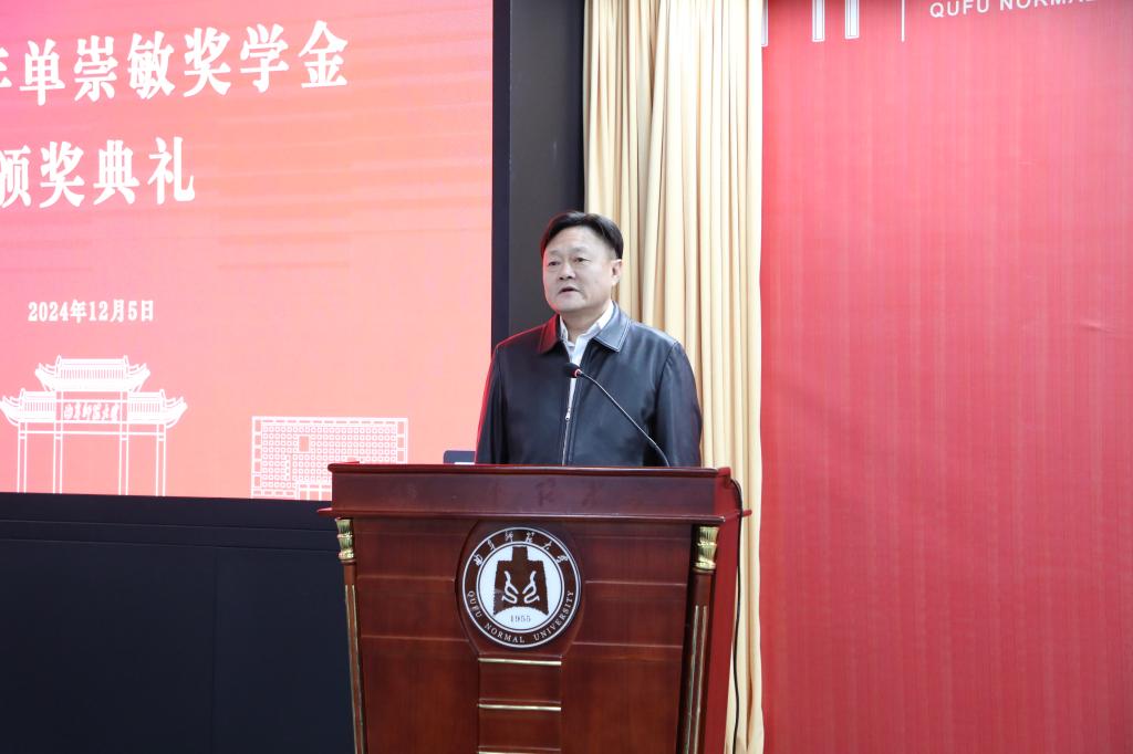 纪洪涛在致辞中对宝威教育集团多年来对学校的关心和支持表示衷心感谢。纪洪涛指出,“单崇敏奖学金”的设立不仅是对曲阜师大师范专业学生学术成就的认可,更是对学校未来教育事业的鼓励和期待,曲园学子要坚守教育初心,提升专业素养,培养创新精神,强化实践能力,注重师德师风,保持终身学习态度,为服务社会、促进教育事业发展贡献自己的力量。