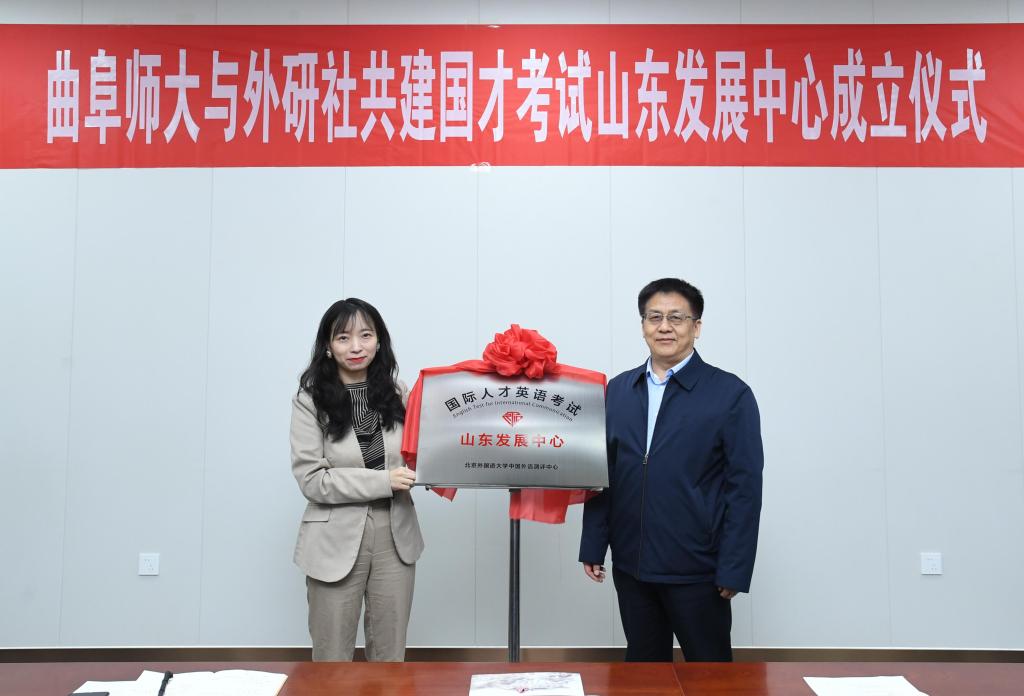 仪式上,胡凡刚与冯涛共同为“国际人才英语考试山东发展中心”揭牌,曲阜师大教务处处长李傅山与外研社高等营销中心华东大区总经理李洪旺为“开云链接官网国际人才培养基地”揭牌。两大平台的成立,将为山东省高校国际化人才培养提供重要支撑。