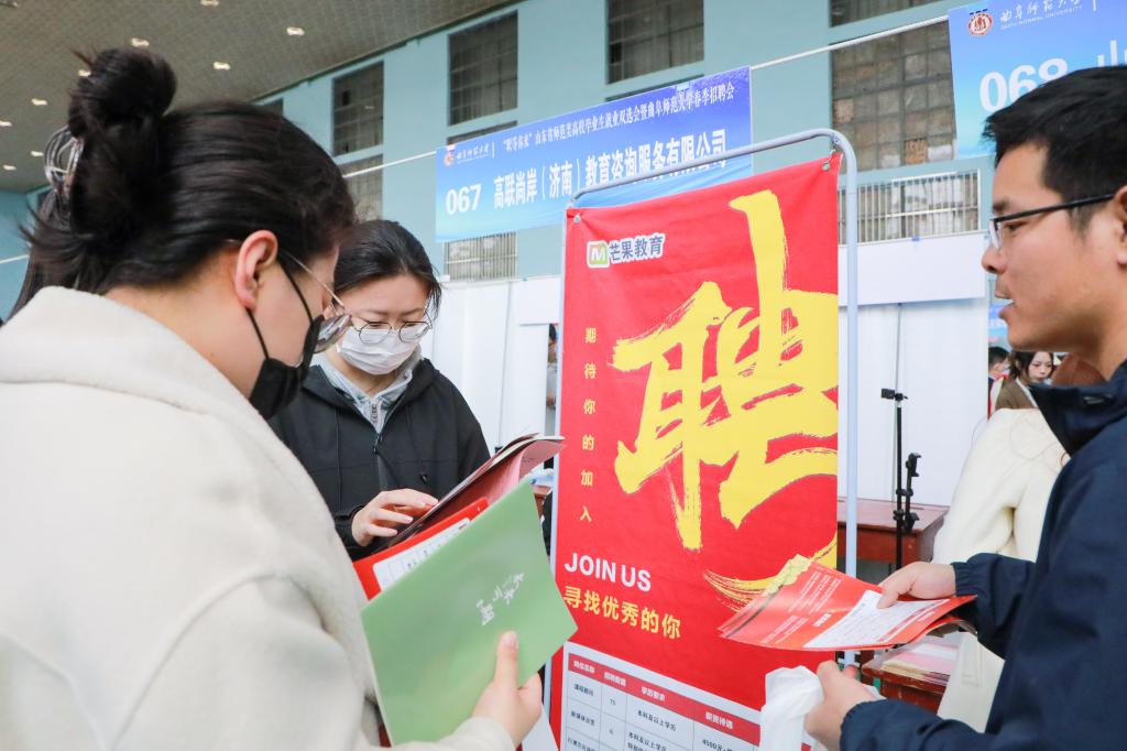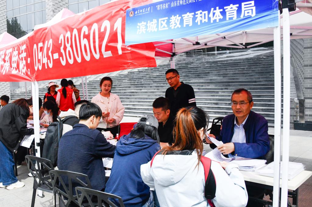 招聘会由山东省教育厅主办、开云链接官网承办。招聘会现场设置了“二维码墙”为求职应聘提供便捷,应聘学生一键扫码即可了解相应招聘信息并投递简历;设置了直播带岗环节,毕业生辅导员代表走进直播间推介毕业生,用人单位代表直播带岗,取得了多方联动促就业的良好效果。针对学校师范办学特色,招聘活动还设置了教育行业招聘专场,其中滨州市提供教师岗位300余个,吸引2000多名师范毕业生报名应聘。学校为本次招聘会组建了300余名师生的志愿者团队,以细致周到的服务、科学规范的流程为本次招聘会提供了坚实保障;开通人才招聘服务绿色通道,确保了招聘会充分发挥好供需对接、人岗匹配的作用。