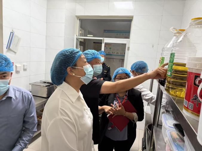 检查组一行重点对学校食堂的制度建设与落实、环境卫生、原料采购、食品储存、加工制作、餐具消毒以及食品留样等环节开展全方位检查,并认真查阅相关文字和视频记录,对于发现的问题,现场提出了整改意见建议。