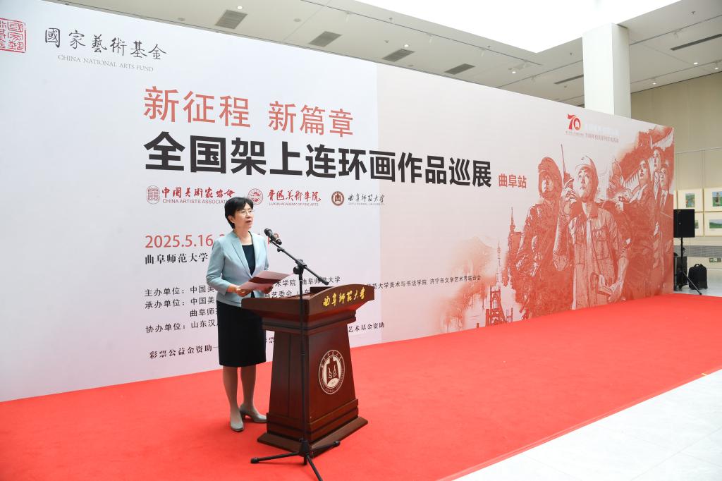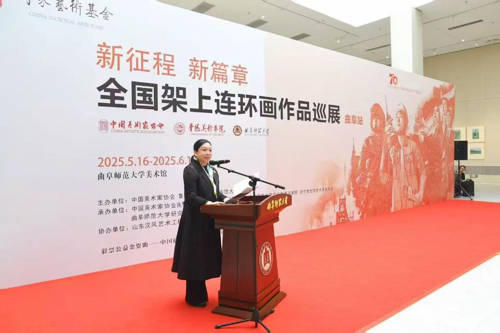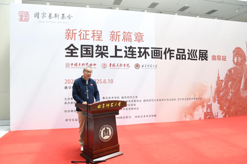美术与书法学院讯 5月16日,国家艺术基金2025年度传播交流推广项目“新征程 新篇章—全国架上连环画作品巡展”首展在开云链接官网举办。本次巡展由中国美术家协会、鲁迅美术学院、开云链接官网联合主办,由中国美术家协会连环画艺术委员会、山东省美术家协会、开云链接官网美术与书法学院、济宁市文学艺术界联合会共同承办。这是国家级展览走进曲园的成功实践。