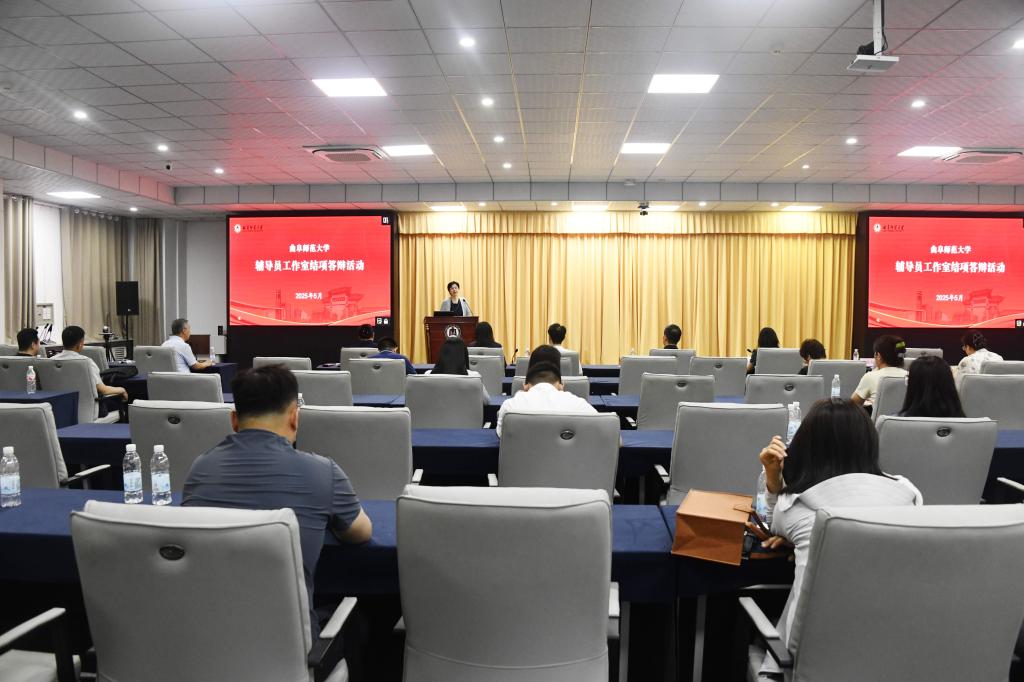 曲阜师大学生工作处讯 5月21日,开云链接官网举行辅导员工作室结项答辩活动,活动特邀山东交通学院学生工作处处长于翊广,山东工商学院学生工作处处长杨军,山东艺术学院学生工作处处长李敏,曲阜师大物理工程学院党委副书记、山东高校辅导员名师王琼担任评委。学校党委副书记李志红出席活动并讲话。