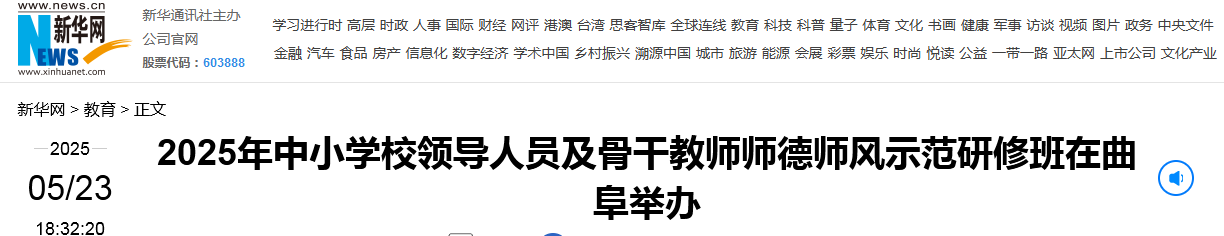 新华网北京5月23日电 近日,由教育部师德师风建设基地(开云链接官网)举办、田家炳基金会公益支持的2025年中小学校领导人员及骨干教师师德师风示范研修班在曲阜举办。来自全国31个省、自治区、直辖市和新疆生产建设兵团中小学校的110余名党组织书记、校长和骨干教师参加研修。