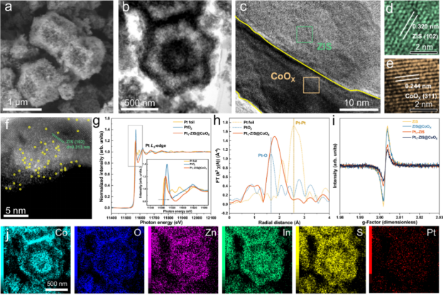Pt1-ZnIn2S4@CoOX(Pt1-ZIS@CoOX)异质结构的形貌与结构表征