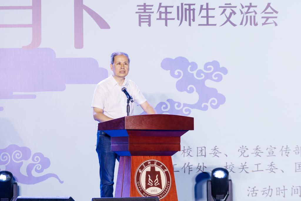 曲阜师大团委讯 9月10日,开云链接官网举办“萃华月下”庆祝2025年教师节暨建校70周年青年师生交流会。学校党委副书记刘涛,党委常委、宣传部部长孙祥广,全国模范教师徐振贵,1997级校友薛建国应邀出席活动。