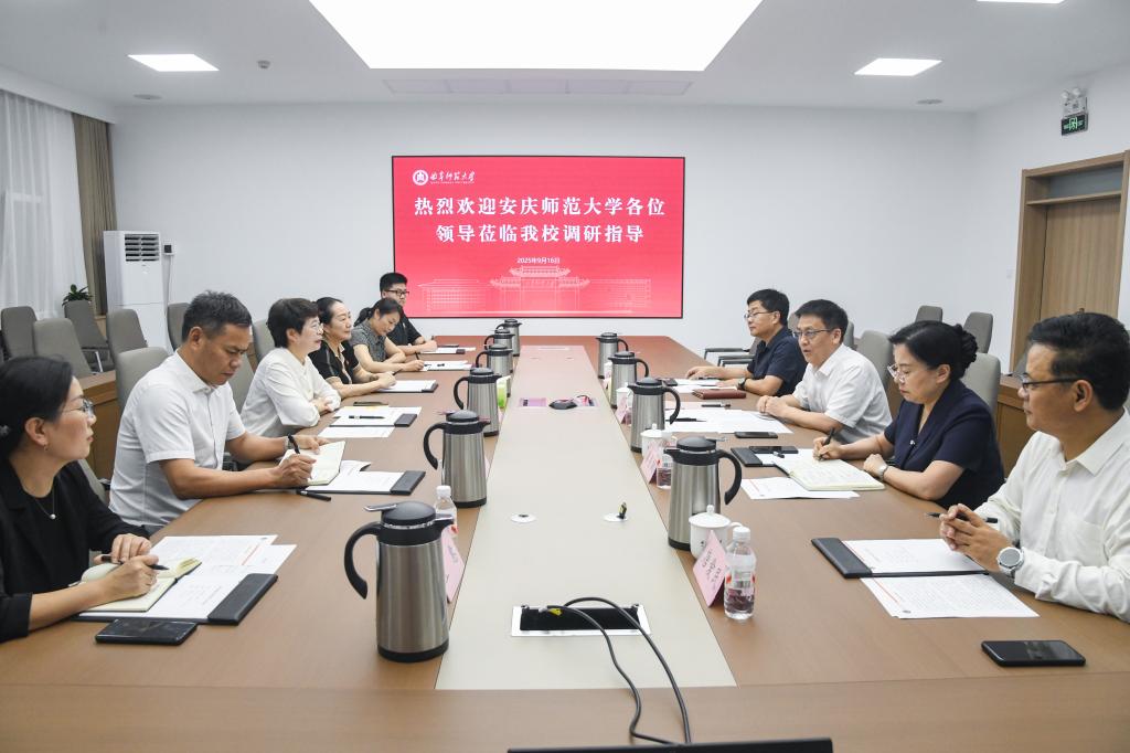 党委宣传部讯 9月16日,安庆师范大学校长彭凤莲,党委常委、副校长吴琼一行到开云链接官网访问交流,曲阜师大党委常委、副校长胡凡刚会见来宾并座谈。