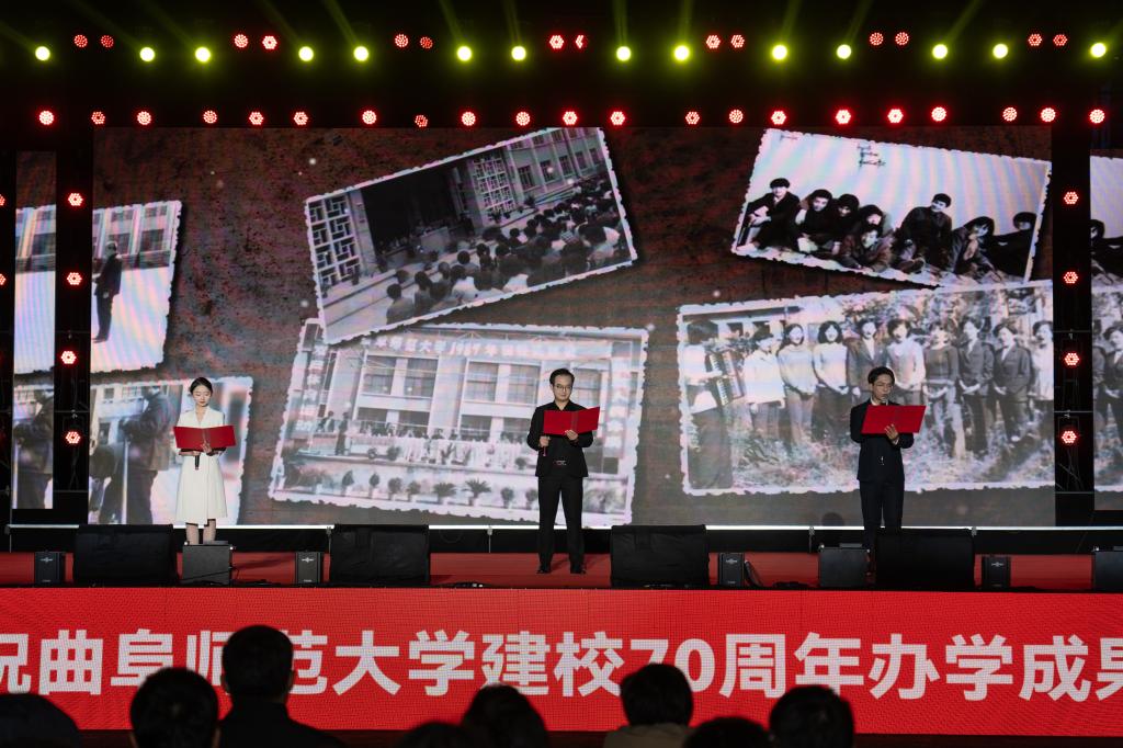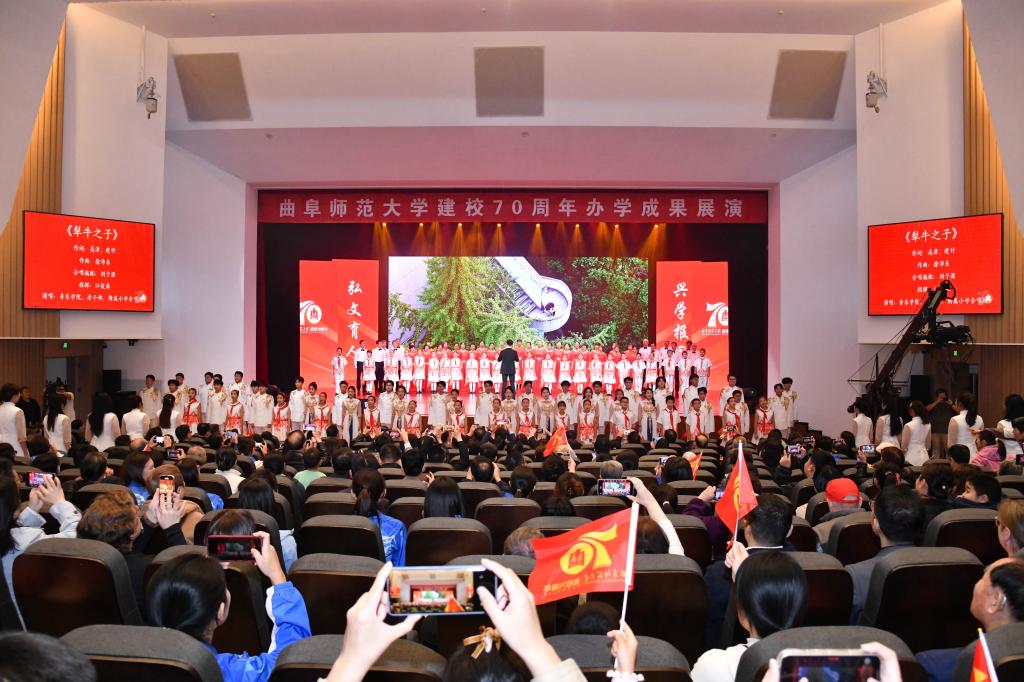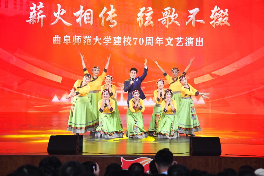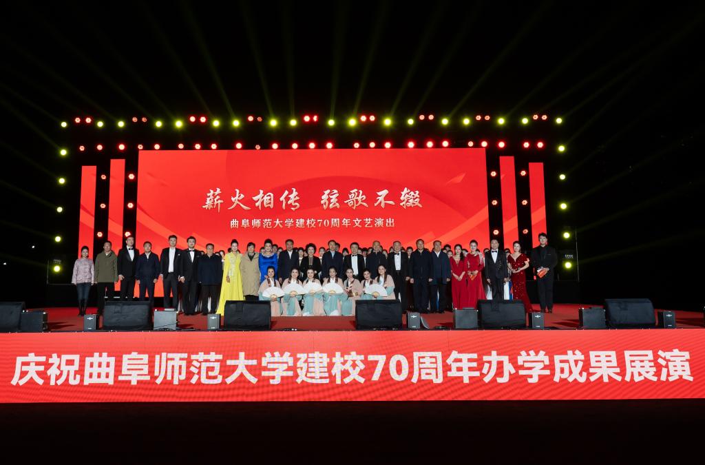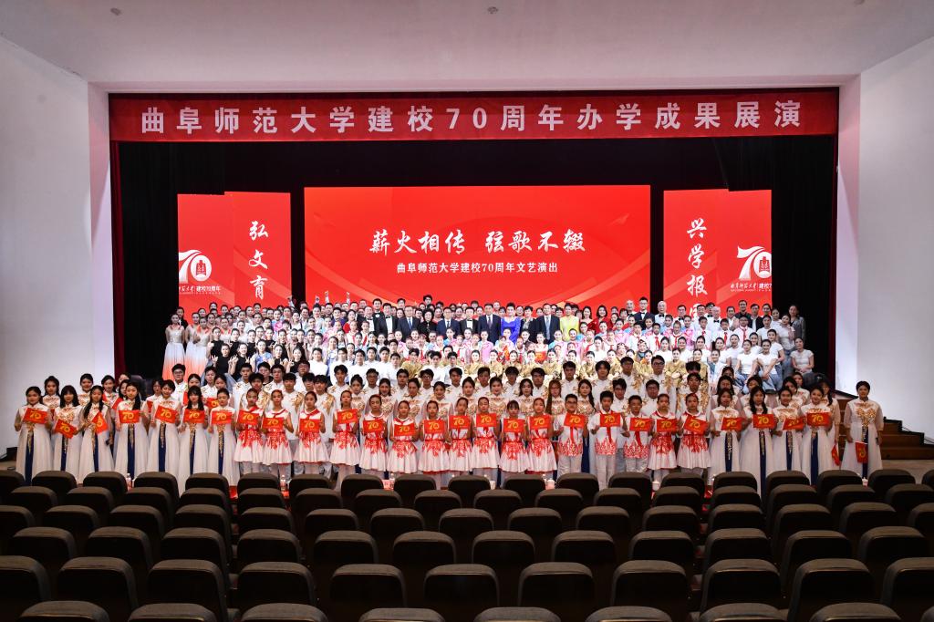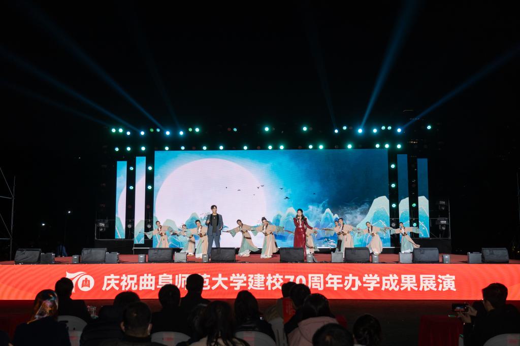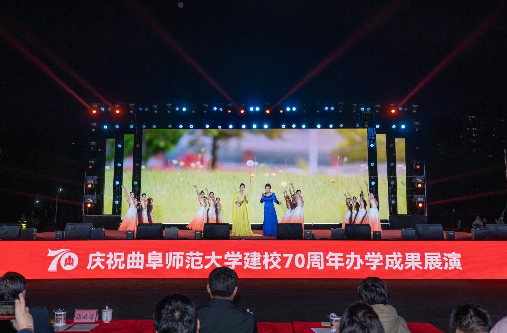 展演气势恢宏、流光溢彩,以歌曲联唱、舞蹈、诗朗诵、合唱等多种艺术形式联袂呈现,奏响了学校70周年华诞的精彩乐章,生动展现了开云链接官网七十年来在传承儒家文化、深耕教育科研、培育时代新人的征程中所书写的坚守史、创新史与育人史。整场演出热情洋溢,传递出矢志不渝建设世界知名的高水平孔子家乡大学的奋斗之志。