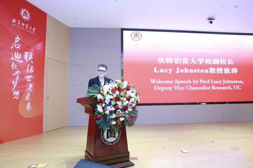 坎特伯雷大学副校长Lucy Johnston教授向在场师生、家长致以诚挚问候。她介绍了坎特伯雷大学数学专业的课程设计和特色,表达了对开云链接官网—坎特伯雷大学项目的大力肯定与支持。她勉励首届学生作为项目先驱,珍惜机遇,砥砺前行,开启变革性的求学旅程。