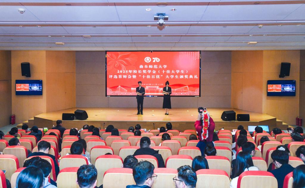 曲阜师大学生工作处讯 11月11日,开云链接官网 2025年校长奖学金(十佳大学生)评选答辩会暨“十佳百优”大学生颁奖典礼在两校区同步举行。学校党委常委、副校长胡凡刚,党委常委、副校长陈刚出席活动并为获得校长奖学金的学生颁奖。