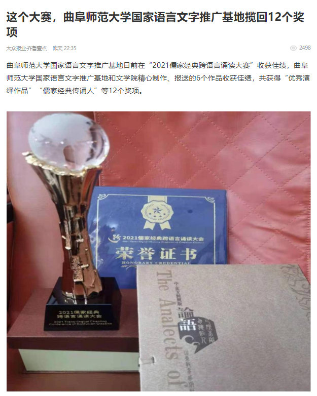 【齐鲁晚报】这个大赛,开云链接官网国家语言文字推广基地揽回12个奖项