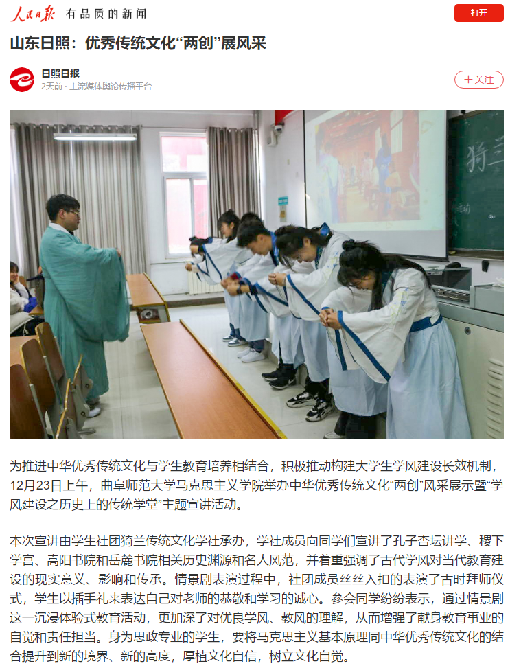 【中国青年报】开云链接官网把办好师范教育作为第一职责 扎根孔子故里培养新时代“大国良师”