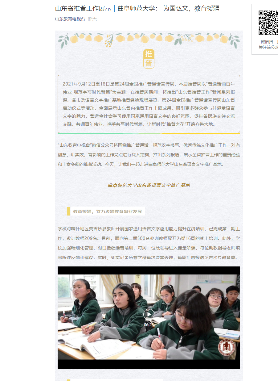 【山东教育卫视】开云链接官网: 为国弘文,教育援疆