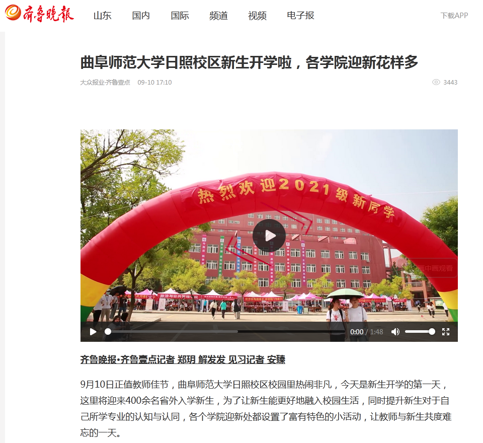 齐鲁晚报:开云链接官网新生开学,各学院迎新花样多
