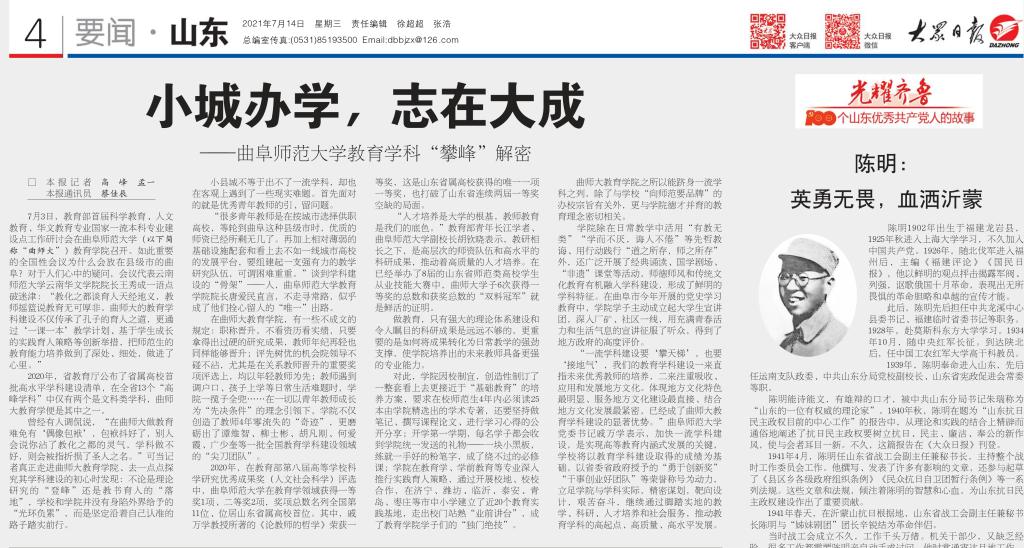 《大众日报》报道链接:http://paper.dzwww.com/dzrb/content/20210714/Articel04002MT.htm