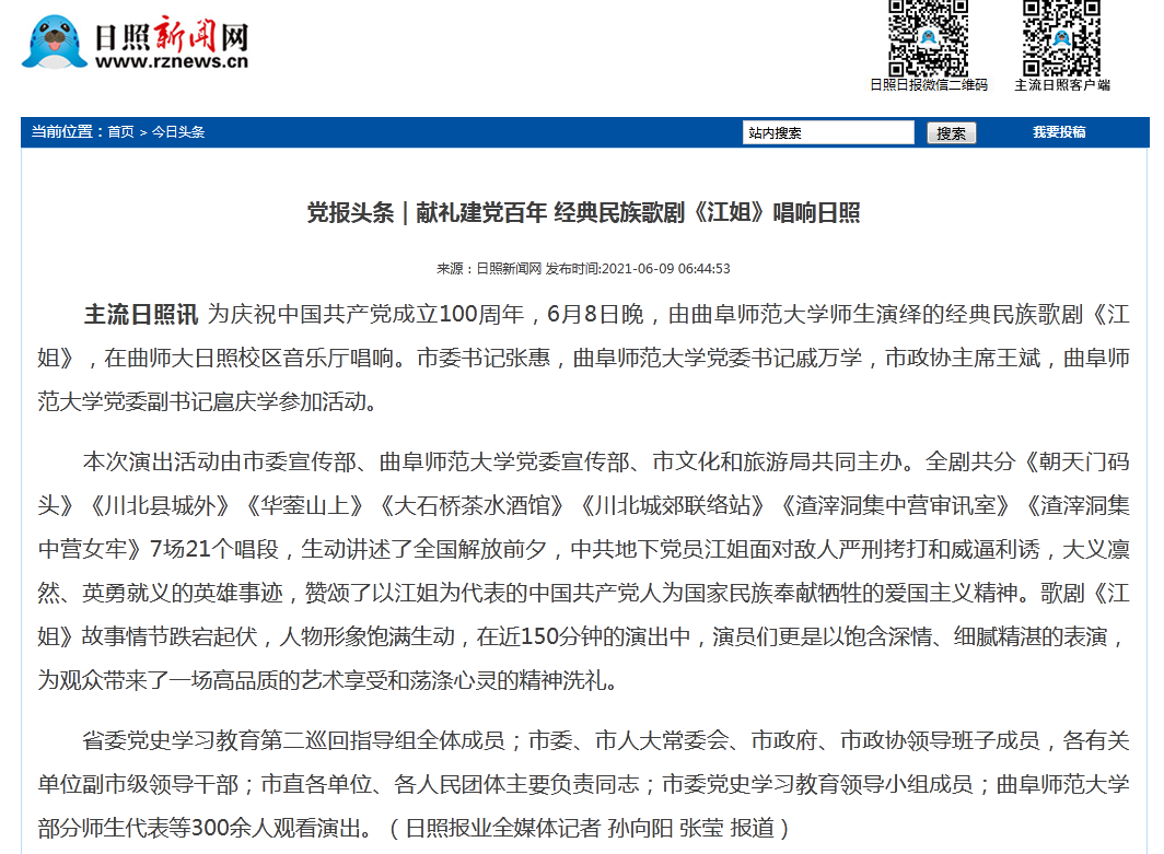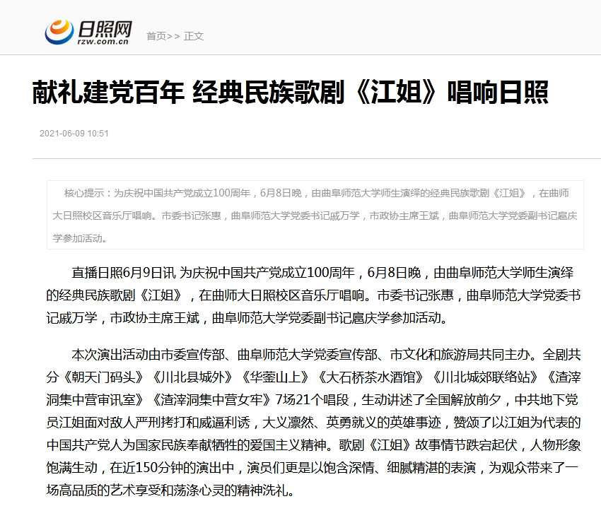 日照网:开云链接官网师生演绎经典民族歌剧《江姐》献礼建党百年