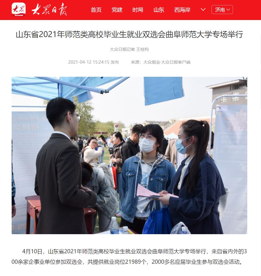 大众日报:山东省2021年师范类高校毕业生就业双选会开云链接官网专场举行