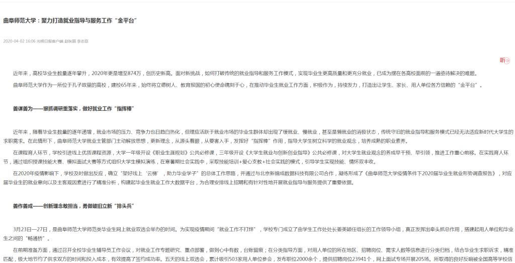 光明日报客户端报道链接:http://share.gmw.cn/difang/sd/2020-04/02/content_33709462.htm