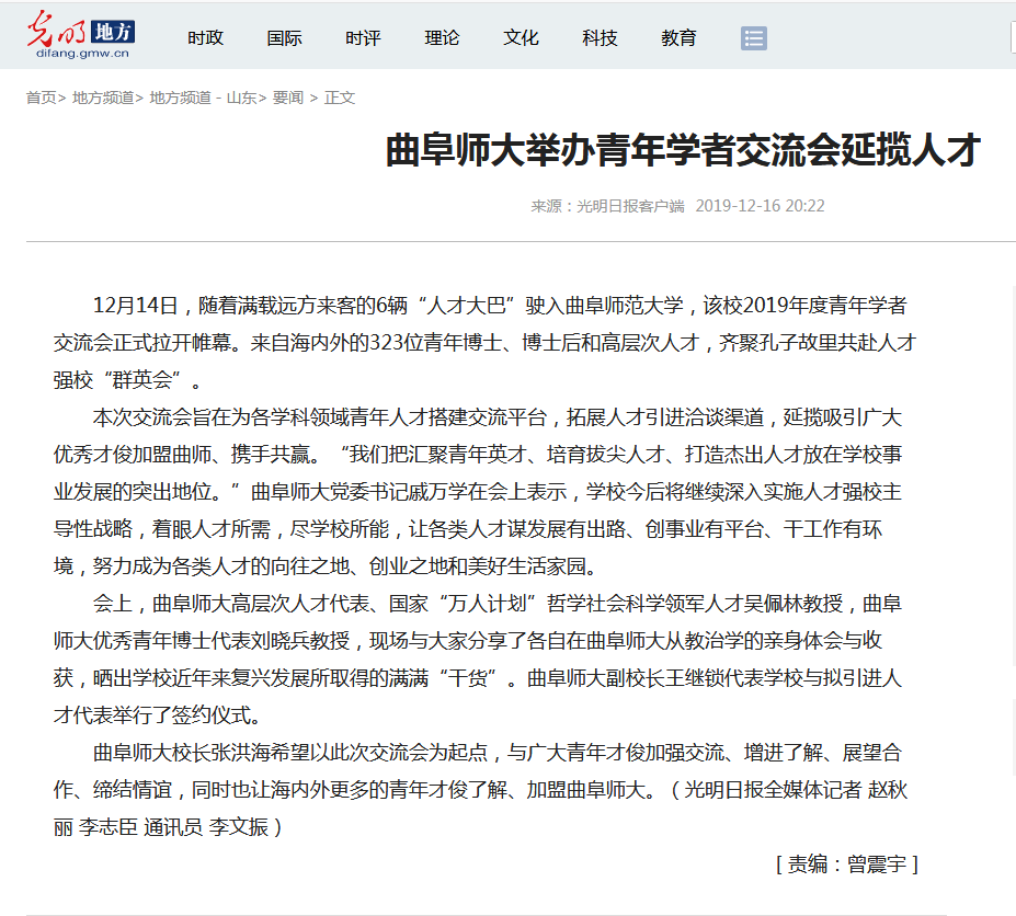 报道链接:http://difang.gmw.cn/sd/2019-12/16/content_33405805.htm