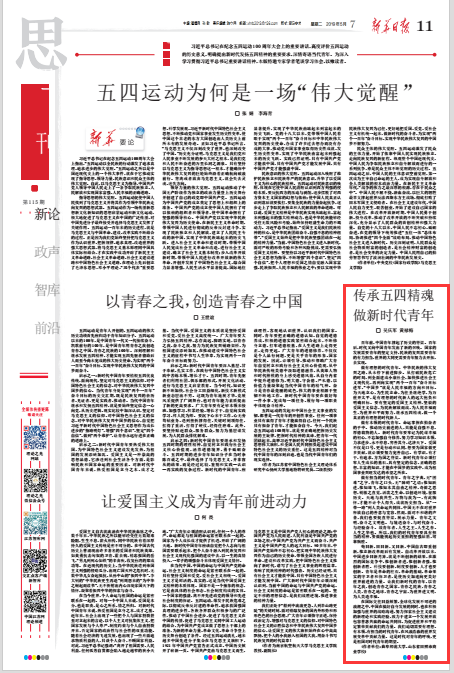 新华日报刊发我校教师评论文章《传承五四精魂 做新时代青年》