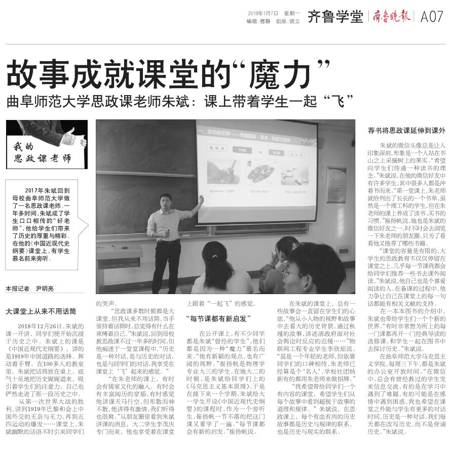 《齐鲁晚报》报道链接:http://epaper.qlwb.com.cn/qlwb/content/20190107/PageA07TB.htm