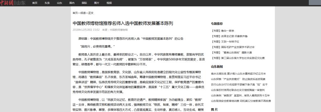中国新闻网:中国教师博物馆推荐名师入选中国教师发展基本陈列