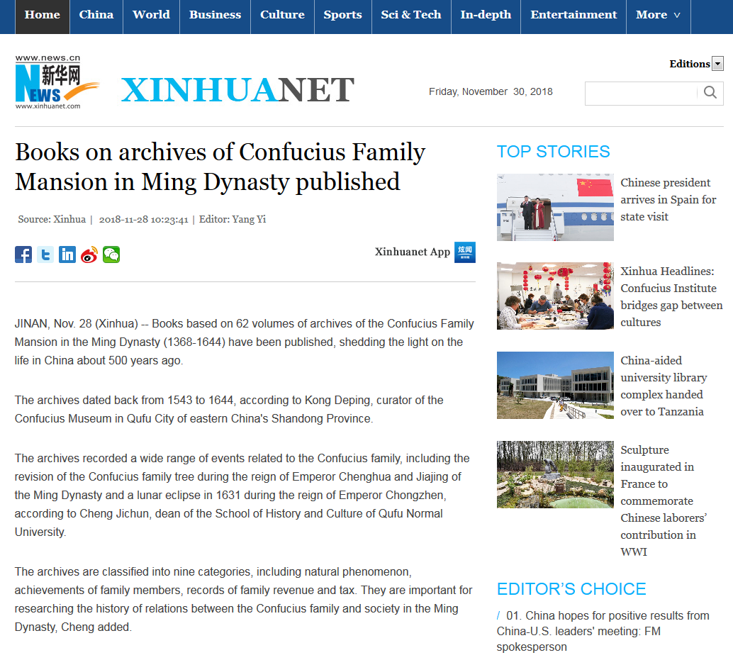 新华社:《孔子博物馆藏孔府档案汇编•明代卷》出版发行