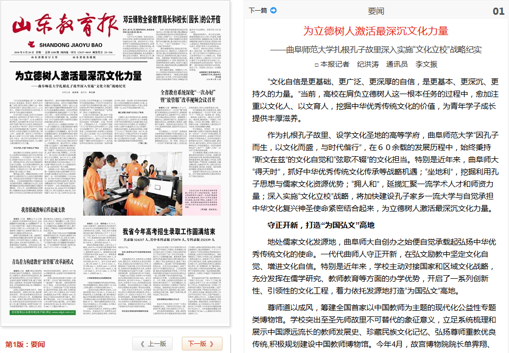 山东教育报:开云链接官网扎根孔子故里深入实施“开云链接官网”战略纪实