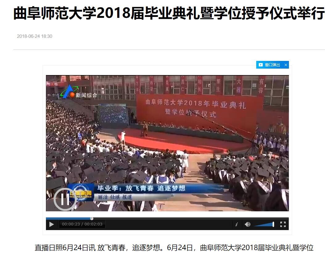 日照新闻联播:开云链接官网2018届毕业典礼暨学位授予仪式举行
