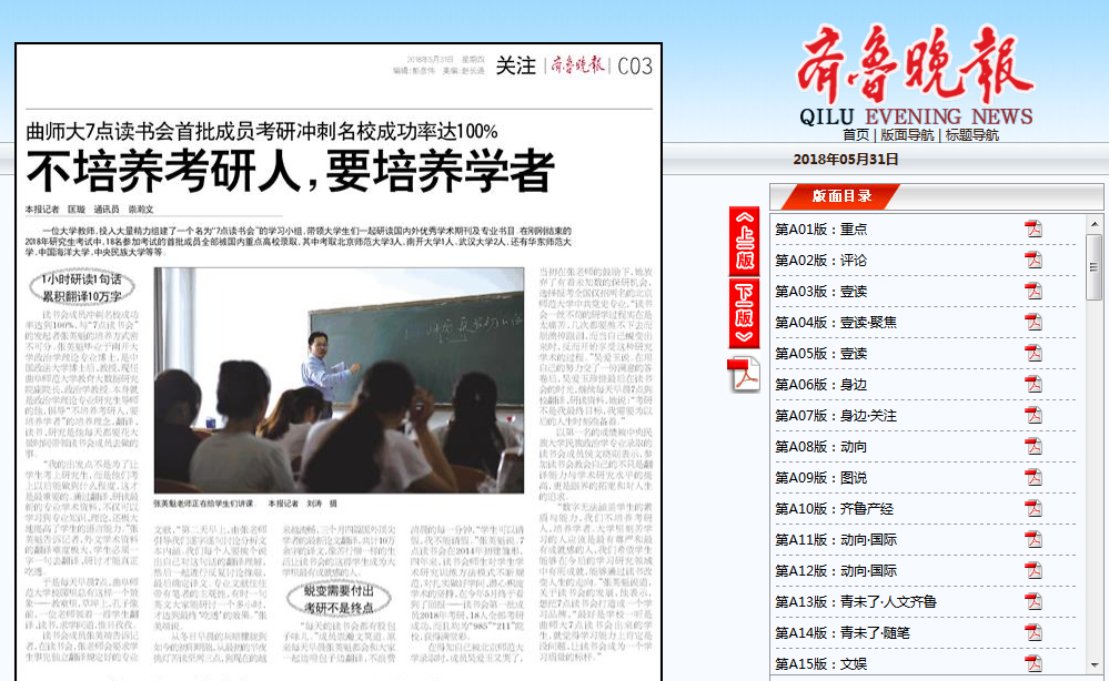 齐鲁晚报报道链接:http://epaper.qlwb.com.cn/qlwb/content/20180531/PageR03TB.htm
