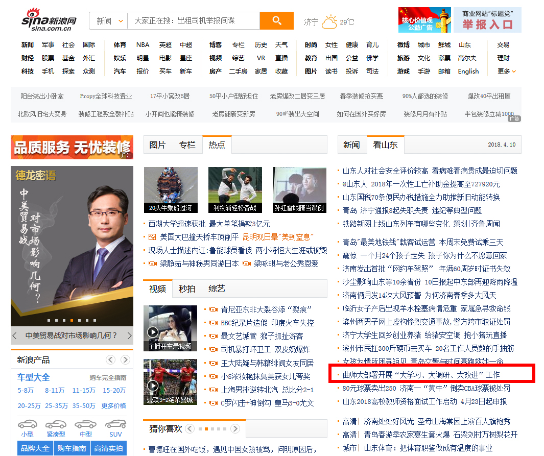新浪网报道链接:http://sd.sina.com.cn/edu/2018-04-10/detail-ifyzeypz9528115.shtml