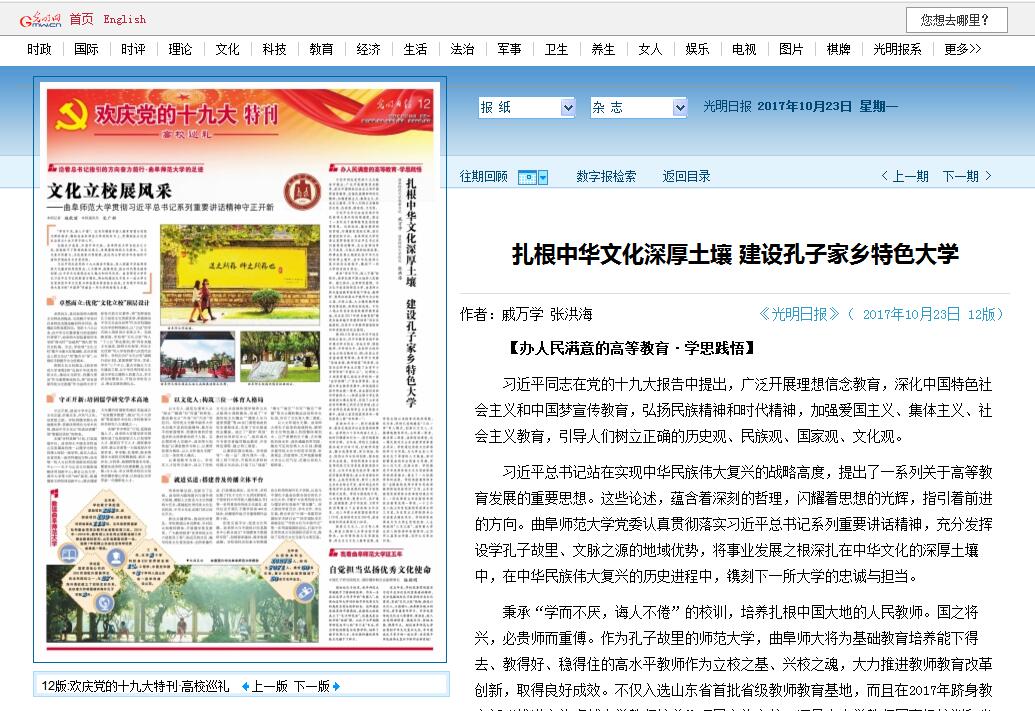 光明日报《扎根中华文化深厚土壤 建设孔子家乡特色大学》文章链接: